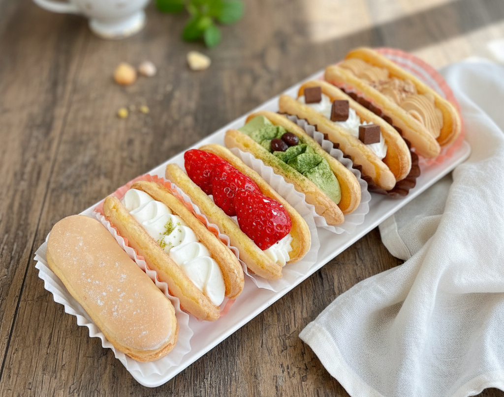 B-セット いちごカスタード、板チョコ、塩ミルク、 ティラミス、ほうじ茶、さつま芋 1,200円税込